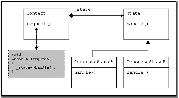 Context délègue les requêtes à son _state (concret) courant.